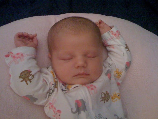 Vanessa is such a sweet baby! During the day she is either asleep or happily, quietly awake. She loves to watch people’s faces and can now concentrate on them. I’ve seen some hints of smiles, so I bet we’ll see some real ones soon.