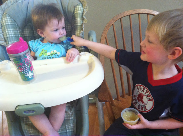 I had to grab my camera (cough, cough, iPhone) today when Carter wanted to share his applesauce with his sister. They love each other so much!