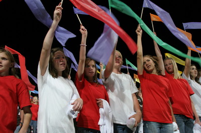 The opening number, where all the 1600 youth marched onto the field, and each stake had a banner carried by one of the young men: