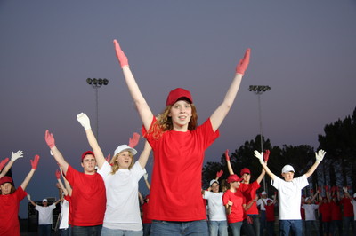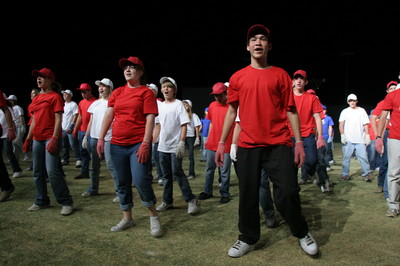 The next morning, we had a rehearsal at 10am, which was very long and HOT! I got to talk to the kids beforehand, which was essential to me, because I fixed a couple of last minute problems in our stake’s dance (we made a huge American flag out of the dancers, and some red and white kids were ending up in the blue section!). Daniel and Carter and I spent some of the rehearsal in the stands (while I took pictures), and some of the time we went down to the grass where there was shade! After it was over, we went and got some lunch and all three of us took naps! I went back around 5:30 to get some of the pizza they were providing for the performers and leaders, and then the three of us went to the field around 6:30 to get our seats. The place was already packed, but we ended up with really great seats almost right behind President Monson!