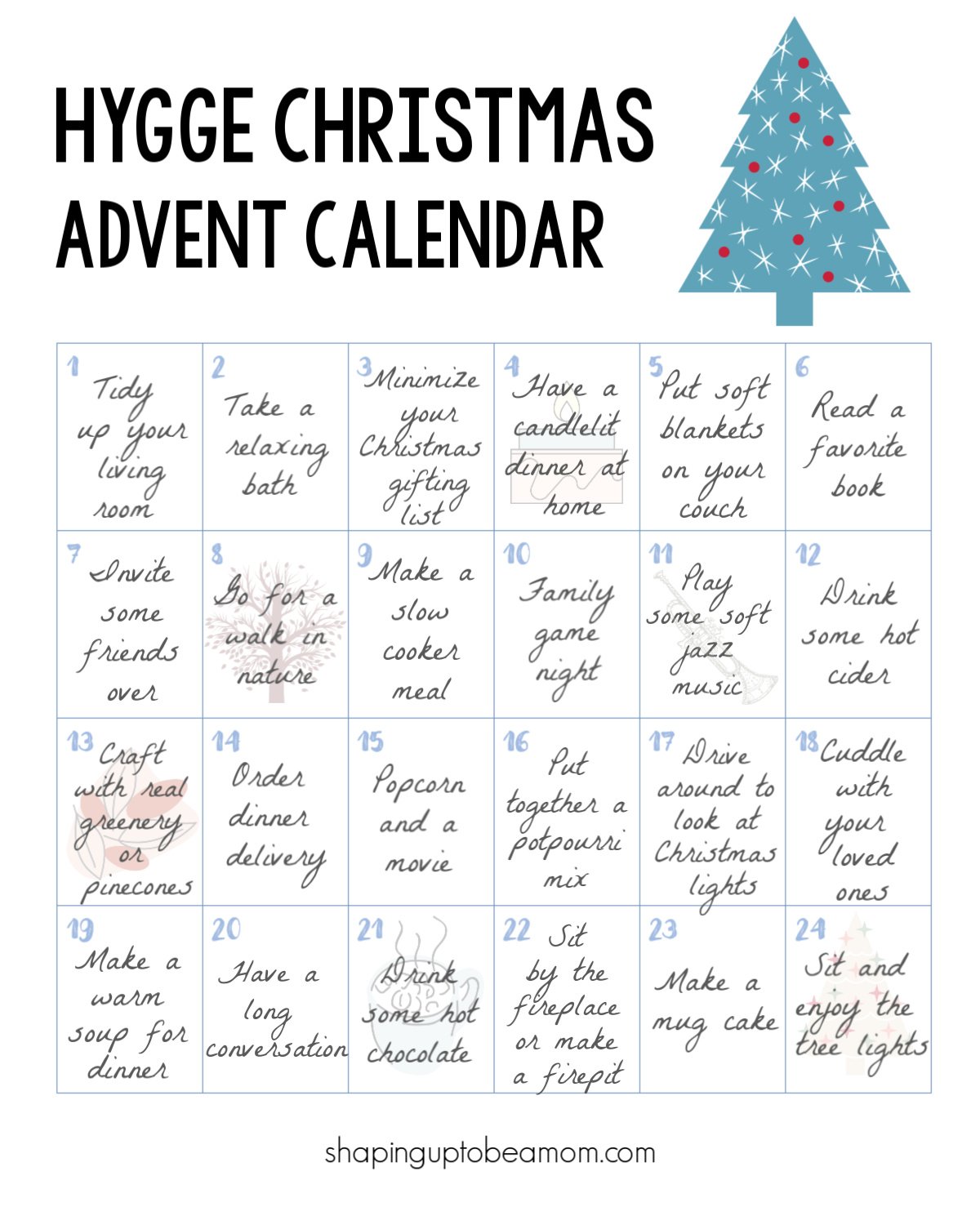 Home » Family » Hygge Christmas Advent Calendar Free Printable