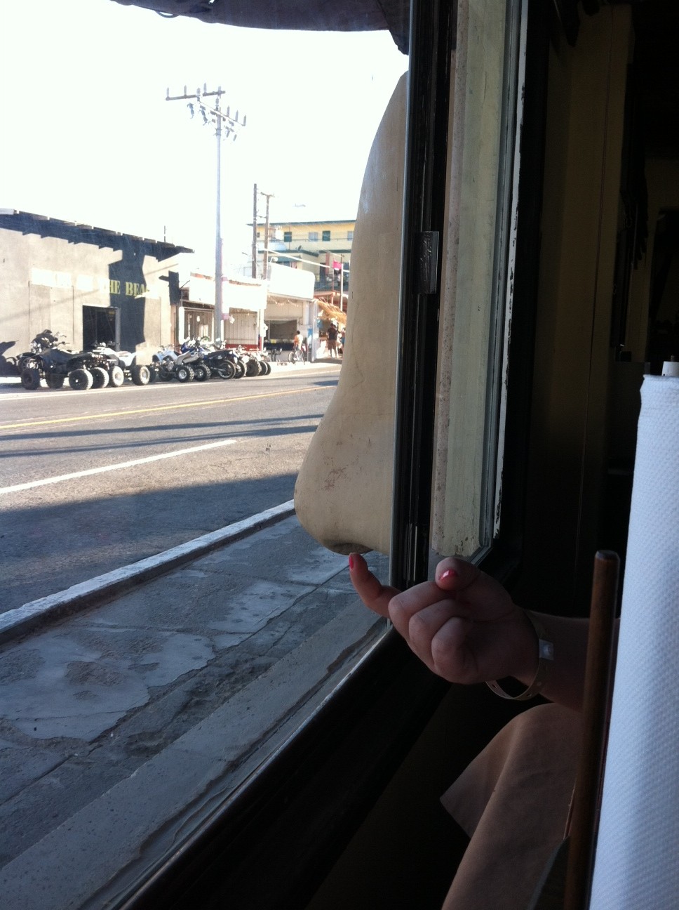 The restaurant had a big face on the outside, so of course I had to make Lindsay pick its nose!
