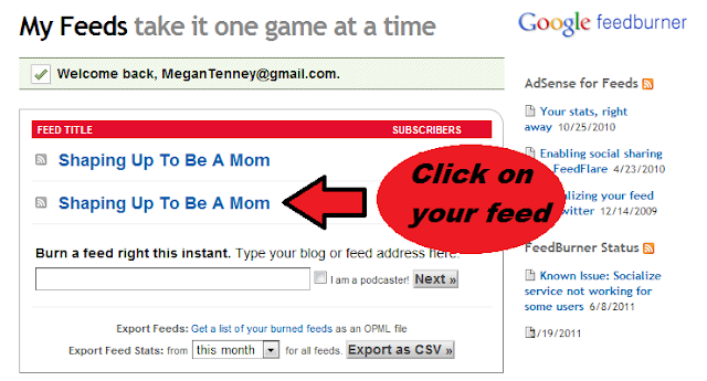 If you have a Blogger blog, then you should already have a FeedBurner account. Log into FeedBurner with your Google account, and click on your feed (it should be your blog’s name). If you have more than one feed, just click on the one with the most subscribers: