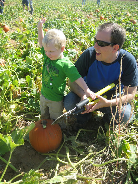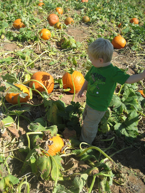 Carter had fallen asleep in the car, but he perked right up when he saw all the “pum-tins!”